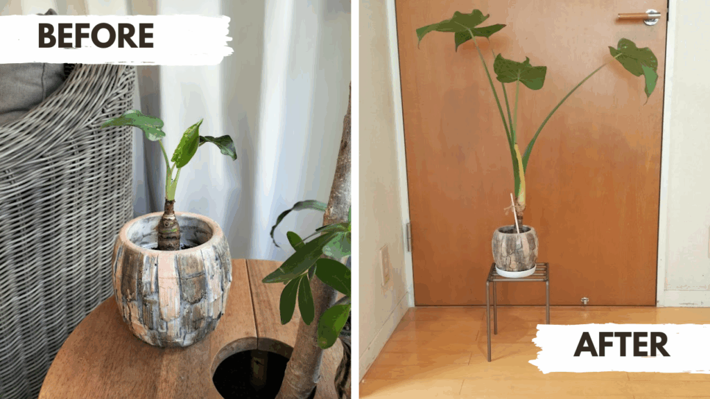中でも特にお気に入りなのが、100円ショップで買った小さなクワズイモ。